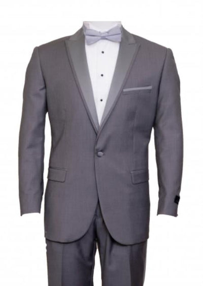 Men'S Mid Gray 1 Cover Button Front Closure Slim Fit Suit Peak Lapel Tuxedo Suit - Wide Lapel Tuxedo