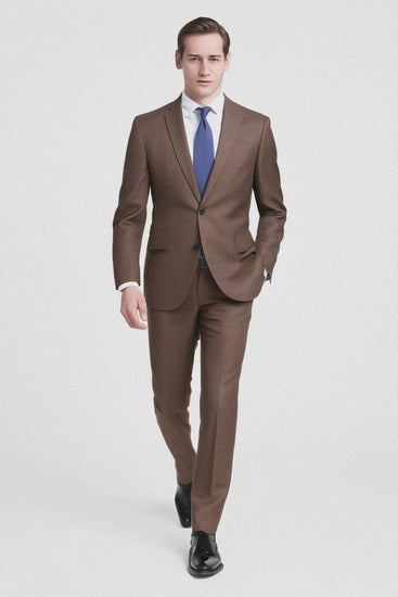This modern fit suit is sure to be a hit. It features a standard 2 button closure, back side vents on the jacket, and flat fron pants.