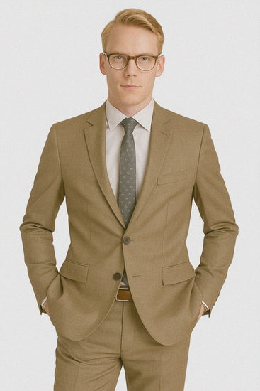 This modern fit suit is sure to be a hit. It features a standard 2 button closure, back side vents on the jacket, and flat fron pants.