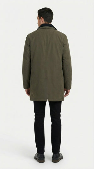Mens Olive Brown Trench Coat Raincoat – Classic Water Resistant Long Coat with Zip and Button Closure for Business, Travel and Everyday Outerwear