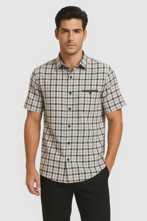 The black plaid dress shirt is tailored with a relaxed yet polished fit, complete with a button-down front and clean lines that exude confidence. The matching pants feature a classic straight-leg cut that ensures comfort and a flattering silhouette, making this suit suitable for all-day wear. Crafted from lightweight, breathable fabric, this leisure suit keeps you looking sharp while providing maximum comfort.
