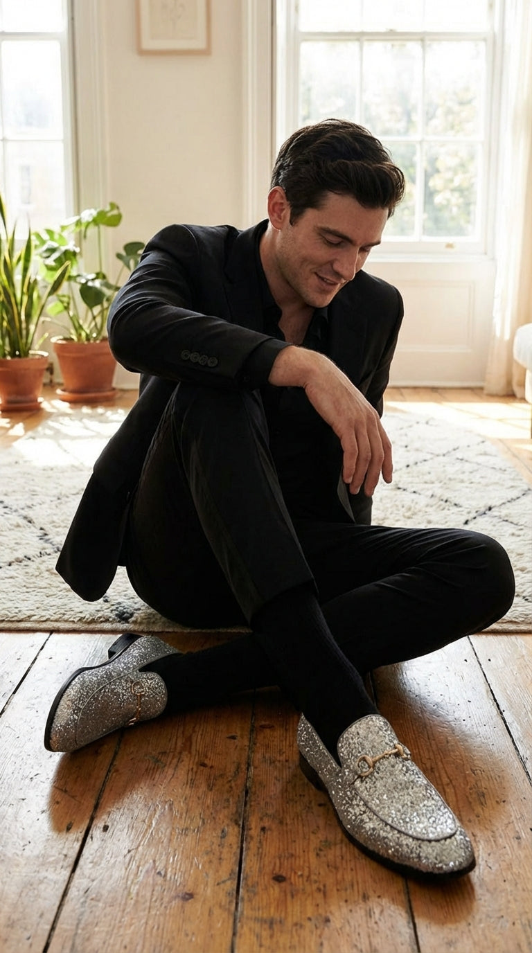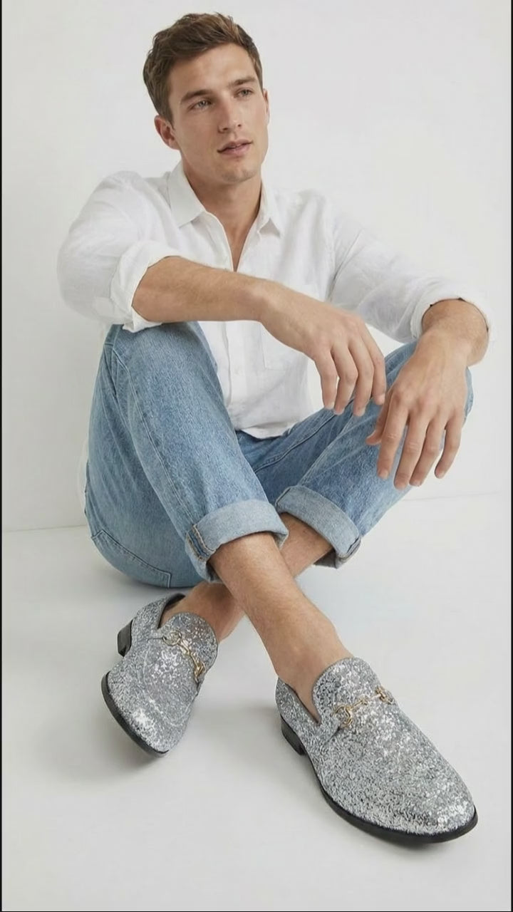 Style: Men's glitter loafers / sparkly dress shoes