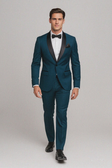 Mens Slim Fit 1 Button Shawl Lapel Tuxedo in Teal