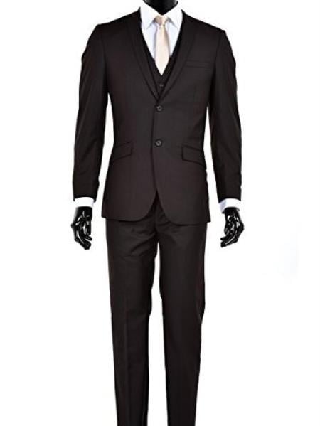 Men's Slim Fit 2 Button Vested Suit Brown