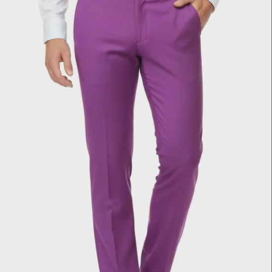 The bold yet classy purple hue makes these dress pants a standout choice for formal occasions, weddings, business meetings, or stylish evening events. Perfectly balanced between modern fashion and timeless charm, these trousers pair beautifully with white shirts, blazers, or patterned jackets for a polished and confident look.