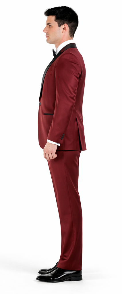 Choose the Mens Prom | Wedding Slim Fit Shawl Tuxedo in Burgundy for a perfect balance of bold color, refined tailoring, and elegant formalwear that leaves a lasting impression wherever you go.