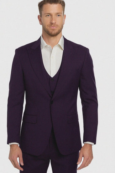 Mens Stacy Adams Suits - Designer Suit - 3 Piece Suit - Vested Suit - Flat Front Pant- Modern Fit Suits Eggplant Suit