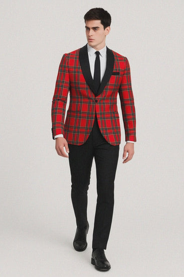 Mens Tartan Christmas Plaid Holiday Blazer in Red
