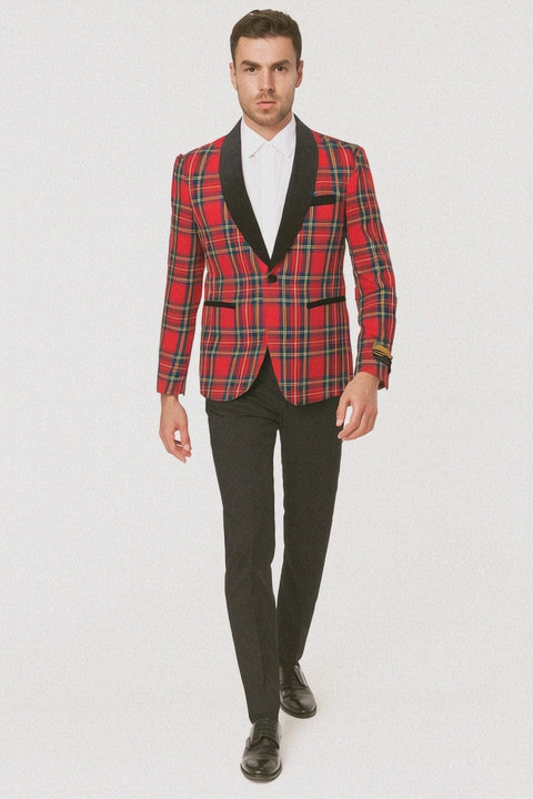 Mens Tartan Plaid Christmas Holiday Blazer in Red