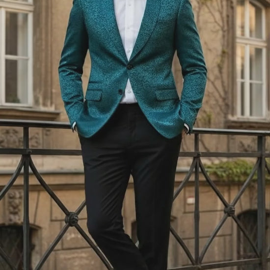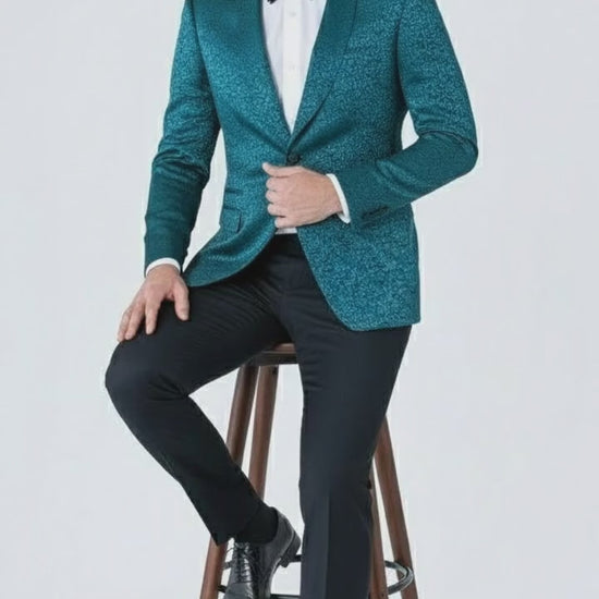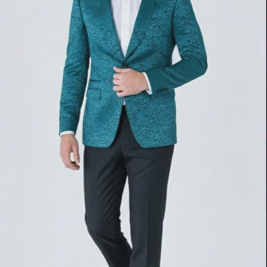 Whether you’re a groom, groomsman, or guest, this teal paisley tuxedo jacket delivers refined charm and modern confidence for any black-tie or formal occasion.
