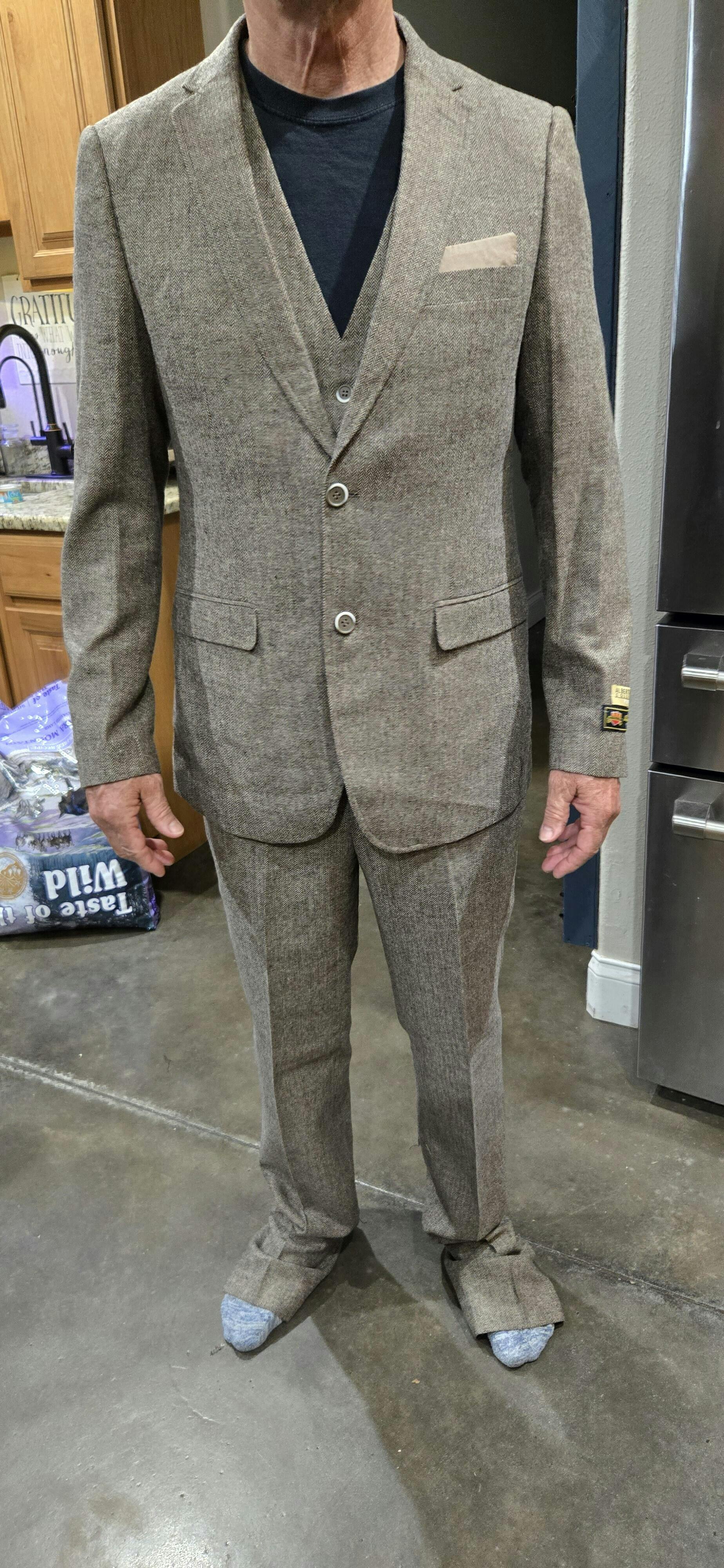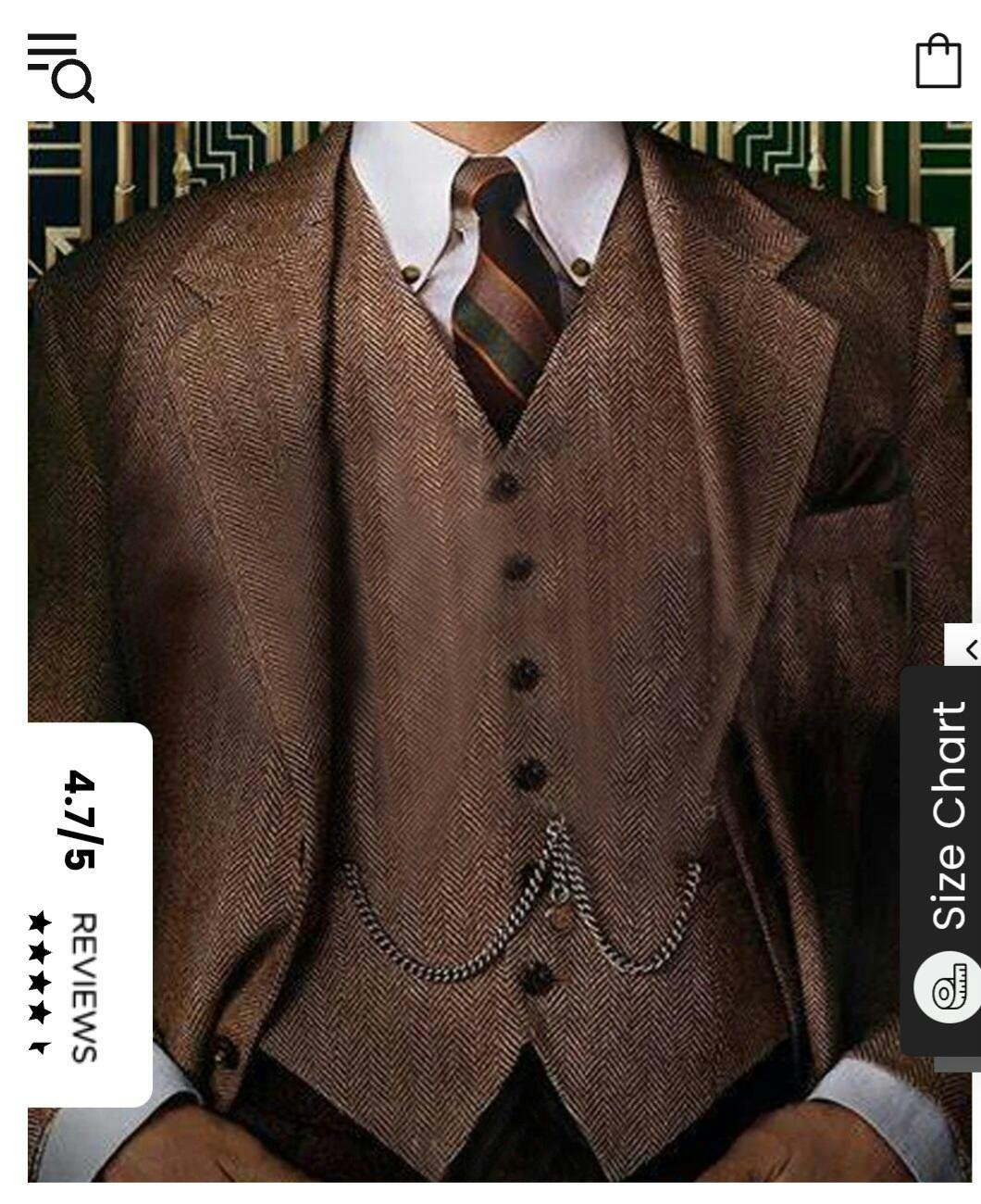 Mens Vested Great Gatsby Tweed Herringbone Tobey Maguire Suit in Light Brown