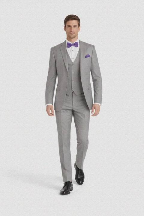 Mens Vested Satin Trim Wedding Tuxedo in Light Grey - Mens Slim Fitted Tuxedo