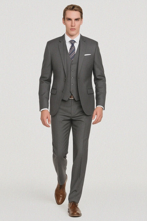 Mens Vested Smart Modern Fit Suit Grey