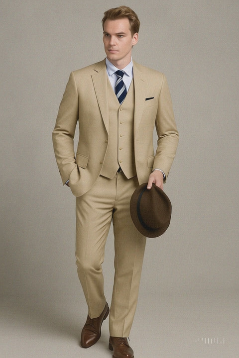 Mens Vested Smart Modern Fit Suit Light Tan