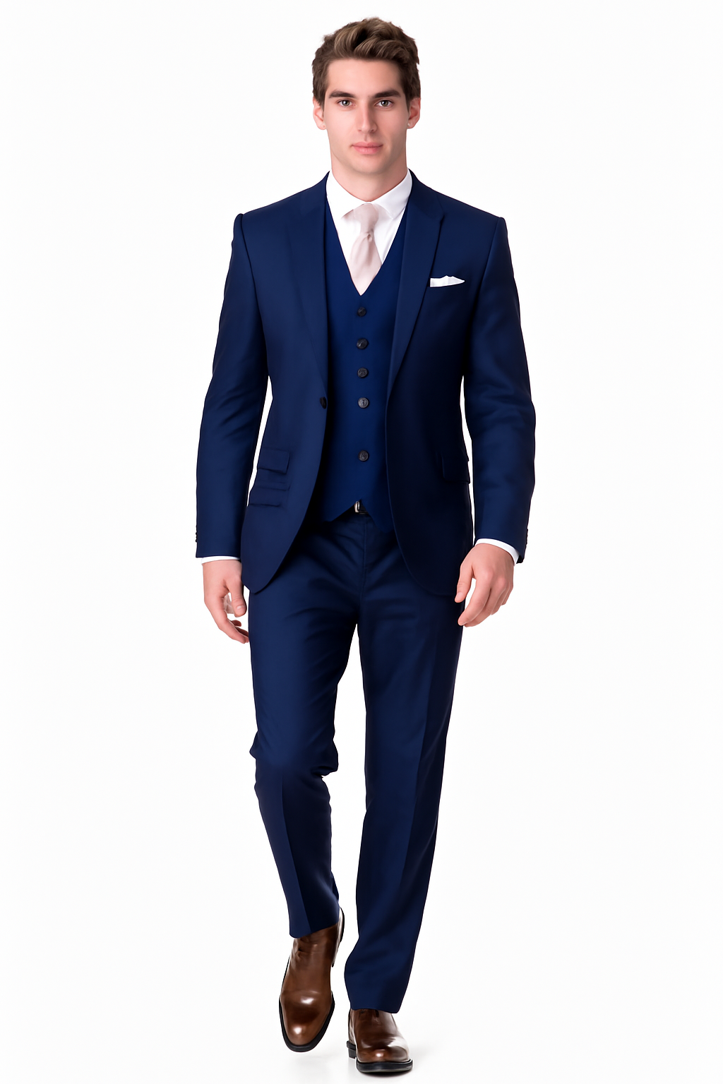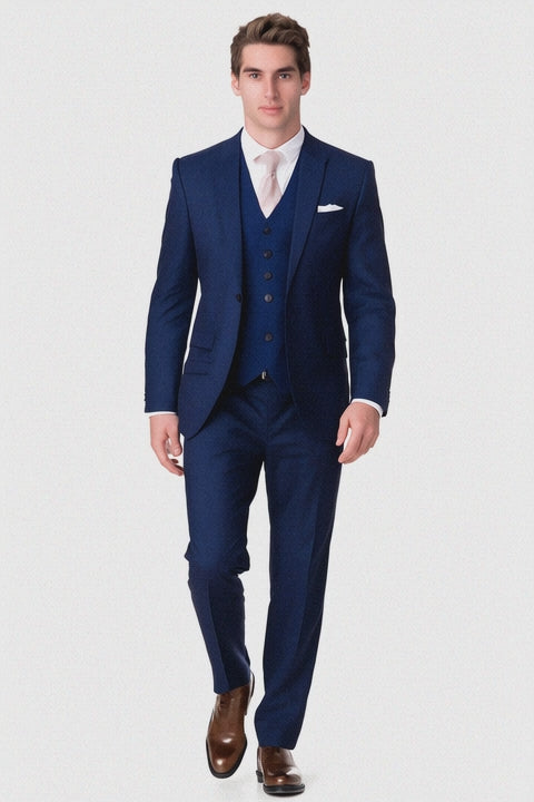 Mens Vested Smart Modern Fit Suit Navy Blue