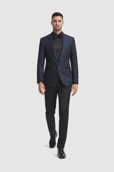 Ideal for prom nights, formal dinners, weddings, and special occasions, the Men’s Slim Fit Paisley Shawl Lapel Navy Blue Tuxedo Blazer is a standout addition to any formal wardrobe. If you’re searching for a tuxedo jacket that combines refined color, intricate pattern, and modern tailoring, this piece delivers timeless elegance with contemporary flair.