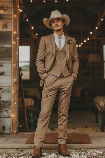 This modern cowboy style suit brings together western tradition and contemporary tailoring for a sharp, distinguished look. Featuring a slim-fit blazer, matching vest, and trousers, it is crafted from fine fabric to ensure all-day comfort with a polished finish. The warm brown tone adds rustic charm, making it a perfect choice for weddings, receptions, or country-themed celebrations. Designed with timeless details, this suit pairs effortlessly with boots and a cowboy hat for a complete western-inspired outfit. A versatile blend of elegance and cowboy flair, it’s made for men who want to stand out with style.