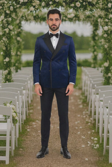 Navy Velvet Double Breasted Tuxedo Jacket Wedding & Prom