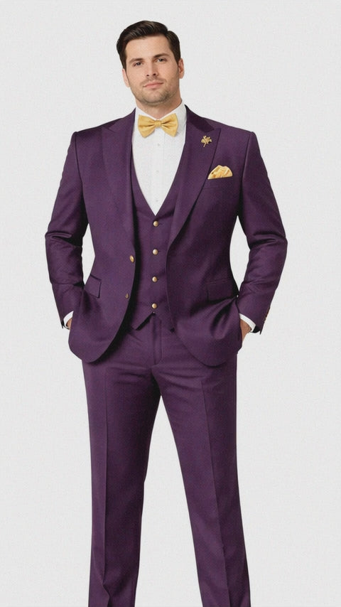 Plum Suit - Purple Suit With Gold Buttons With Double Breasted Vest - Rossiman Suits