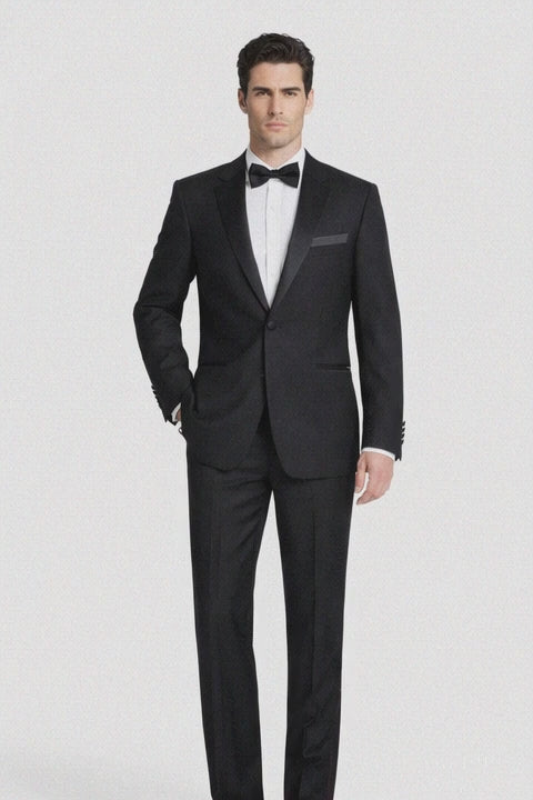 Renoir Suits - Renoir Fashion Mens Polyester/Viscose Classic Fit Two Piece Ribbon Finish Tuxedo In Black