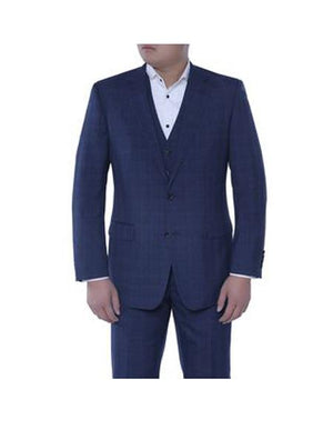 Renoir Suits - Renoir Fashion Verno Men's Dark Navy and Black Plaid Pattern Classic Fit 3-piece Suit