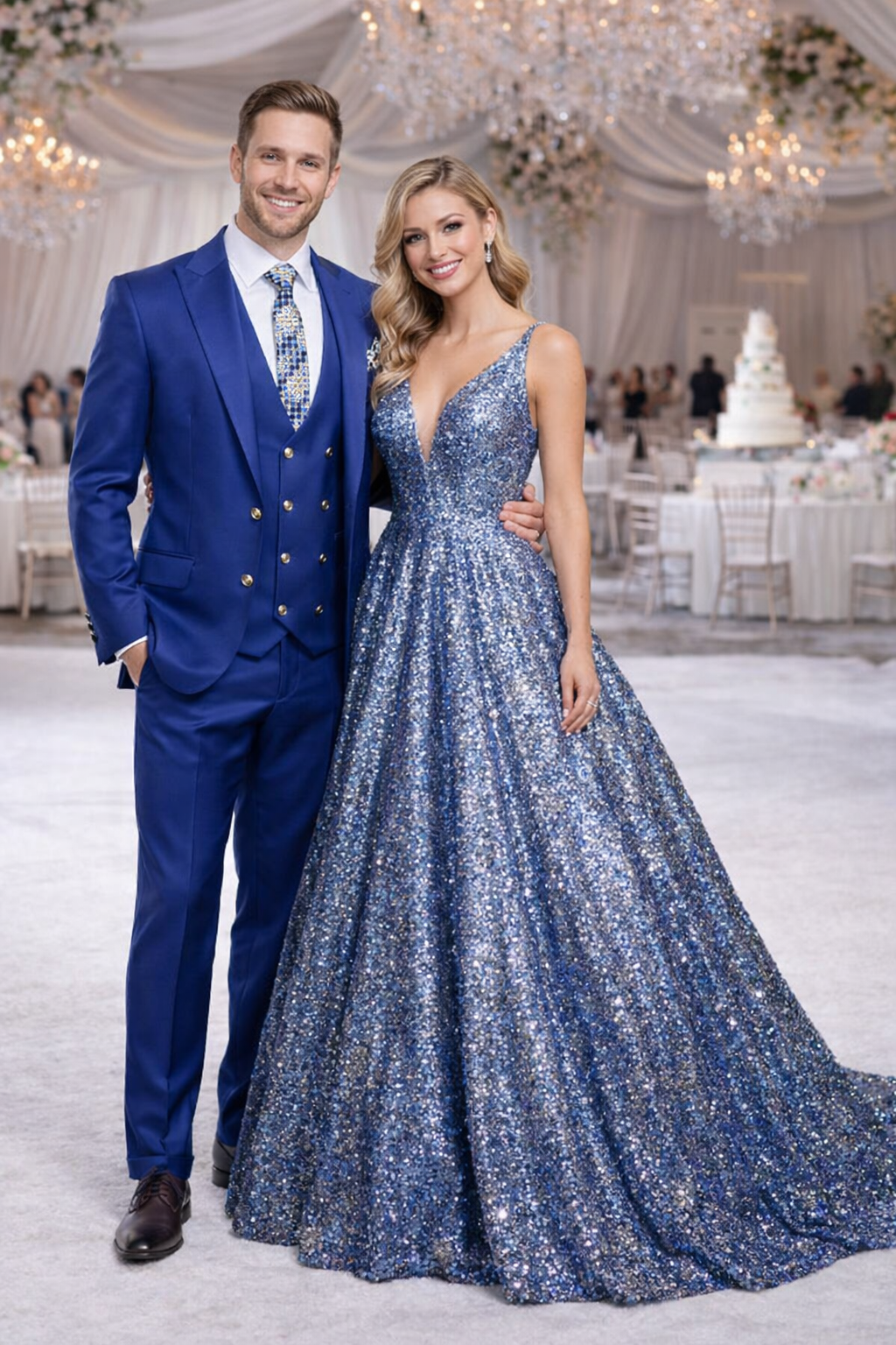 Rossiman Menƒ??s Royal Blue Slim Fit Suit ƒ?? Sophisticated Double-Breasted Design
