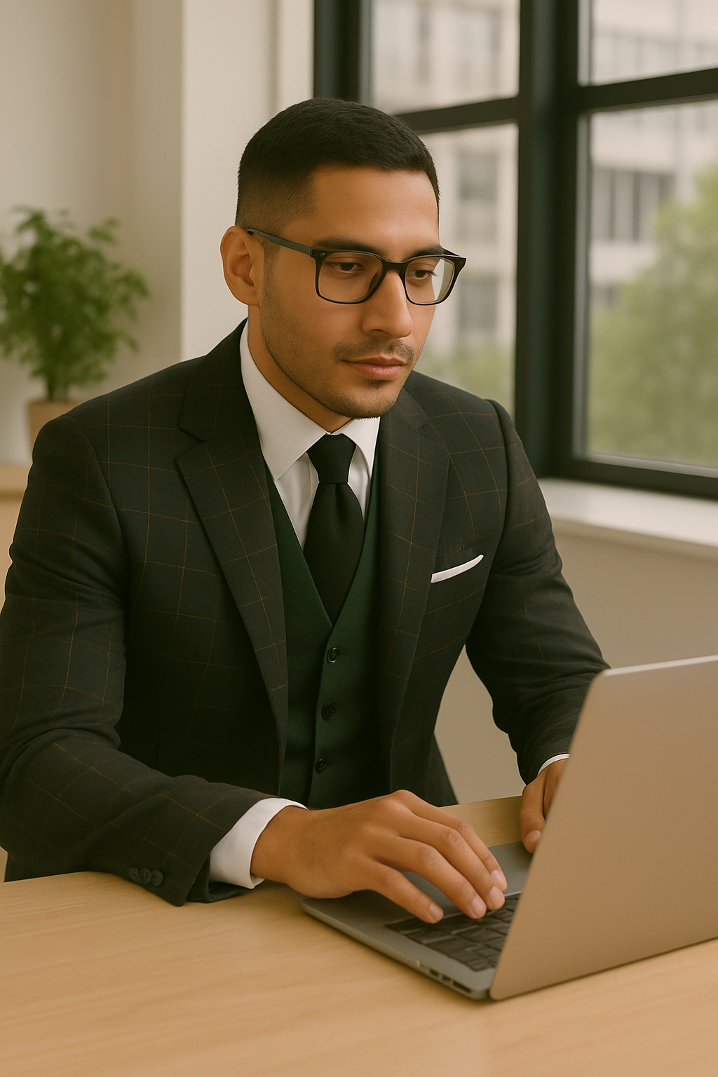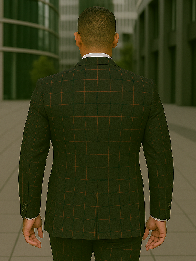 Refine your style with this exceptional men’s 3-piece suit, expertly tailored from a premium blend of 100% Super 200’s wool and cashmere for superior softness, comfort, and elegance. Designed in a modern fit, the single-breasted jacket features a timeless notch lapel and a subtle windowpane pattern for a classic-meets-contemporary appeal. The coordinating double-breasted vest in a solid color adds a sophisticated contrast, complete with a stylish lapel and eight-button closure. Sleek flat-front pants complete the ensemble, offering a sharp silhouette that’s perfect for weddings, business engagements, or any special occasion where style matters.