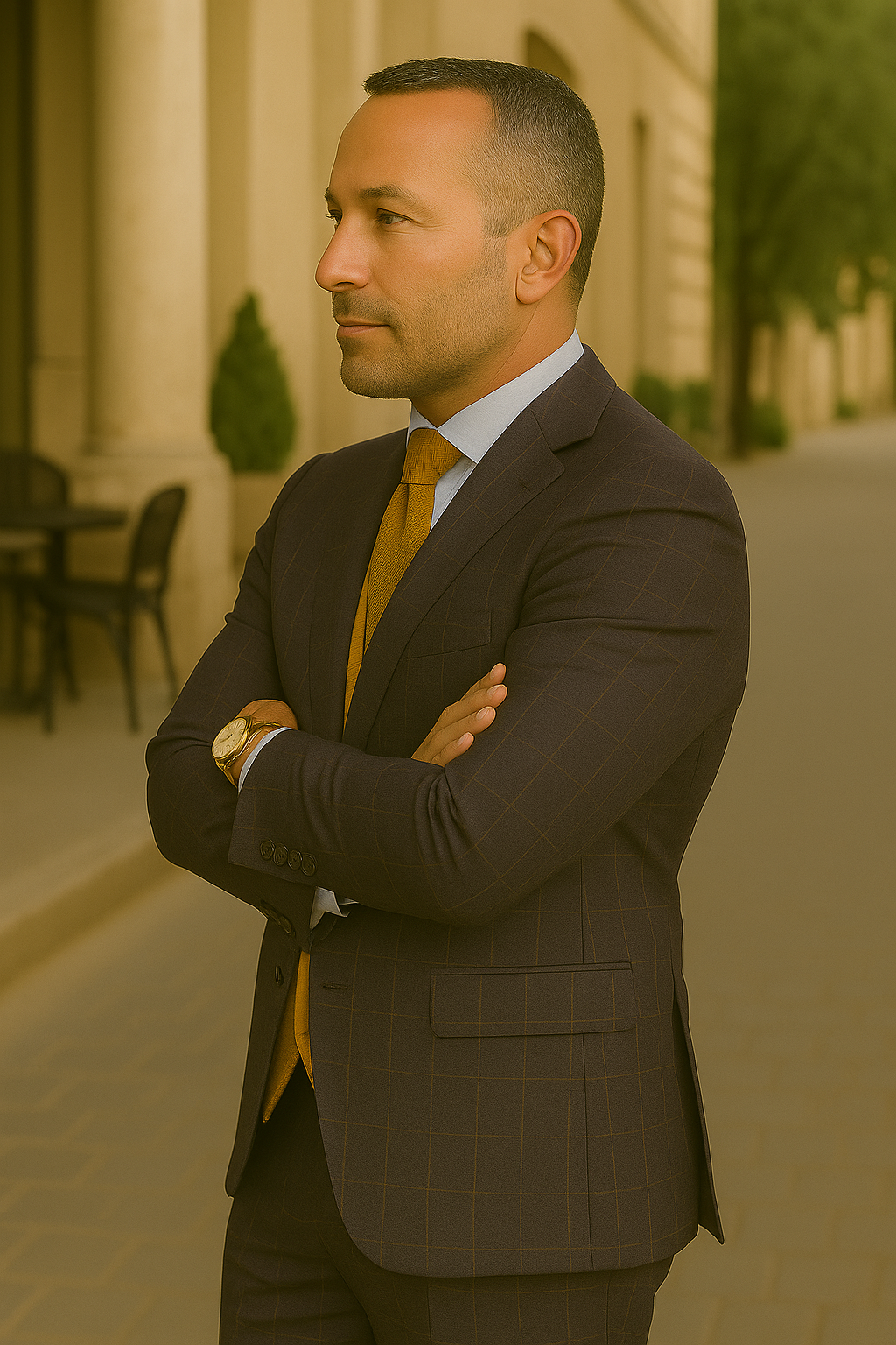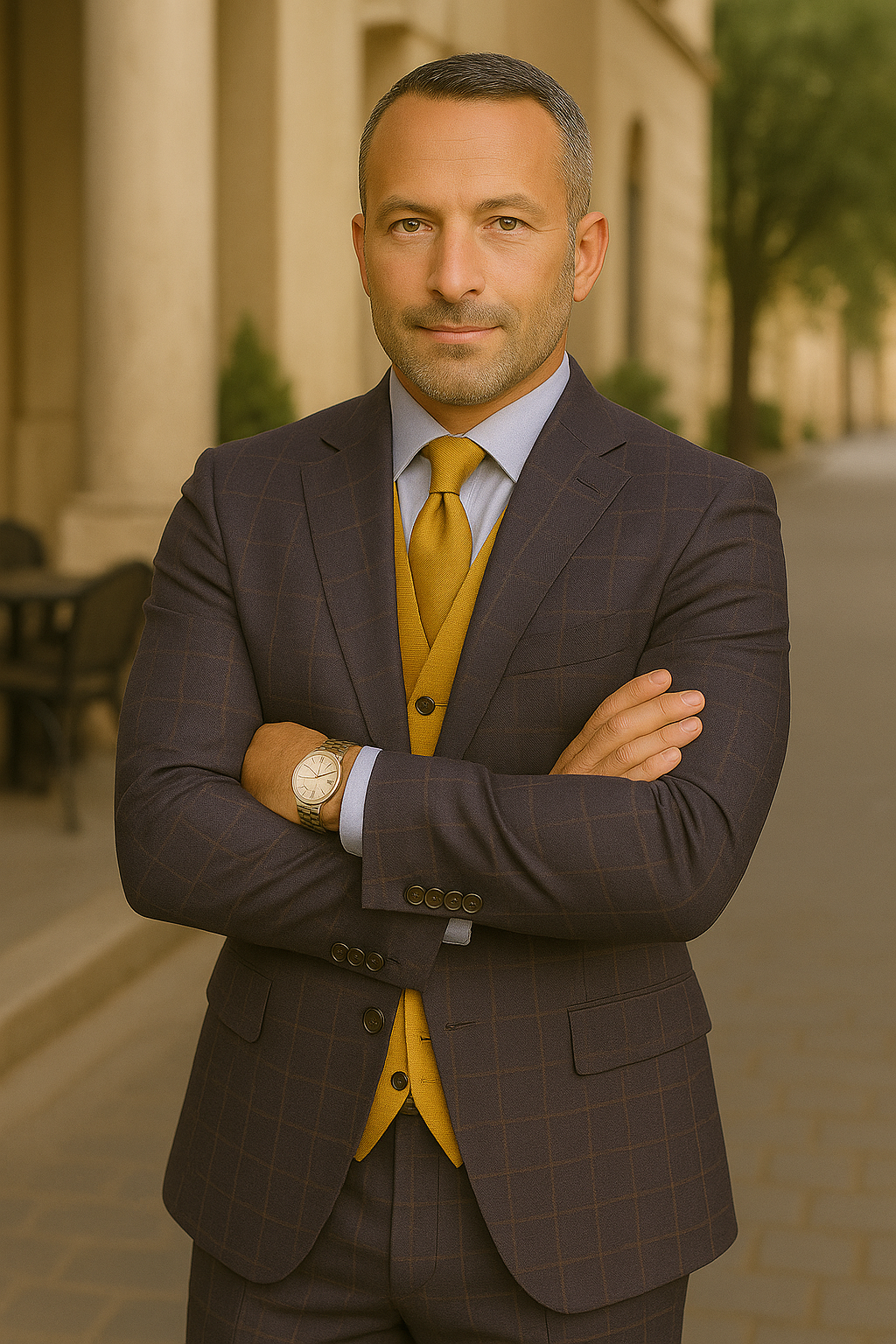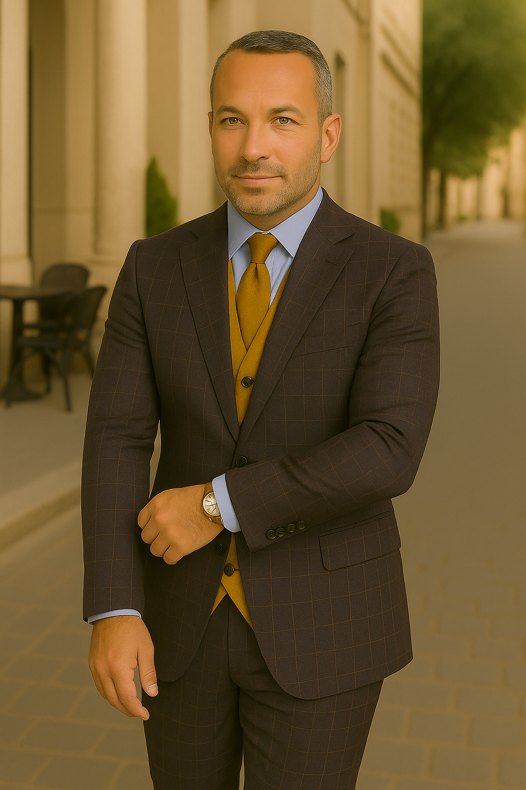 Make a statement with this refined 3-piece suit, expertly tailored from 100% Super 200's wool for a truly luxurious feel. The modern fit delivers a clean, contemporary silhouette without compromising comfort. The suit features a plaid-patterned, single-breasted jacket with a classic notch lapel and side vents, paired with a bold, solid-colored double-breasted scoop vest for added depth and character. Flat-front pants complete the ensemble, offering a streamlined finish. Whether you're attending a wedding, a business function, or a special event, this suit blends timeless elegance with modern sophistication.