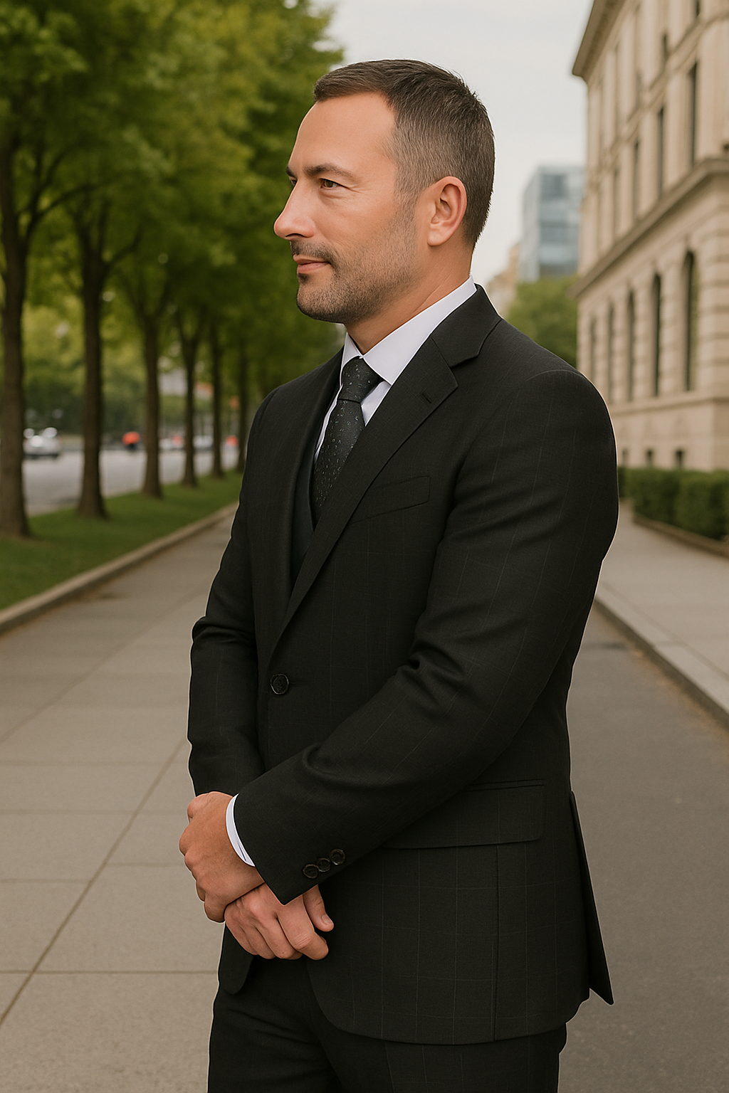 Wool Suit - Italian Made Business Suit by Statement Men's 3 Piece 100% Wool Modern Fit Suit - Solid Scoop Vest